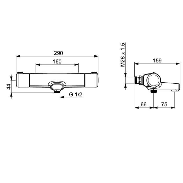 Blyfri termostatblandareför dusch och badkar med fast utloppspip. Temperaturvred med säkerhetsspärr vid 38°C. Volymvred med integrerad keramisk omkastare och kontroll för Ecoflöde. Blandaren är utrustad med backventiler och smutsfilter. Produkten finns bedömd hos Byggvarubedömningen.