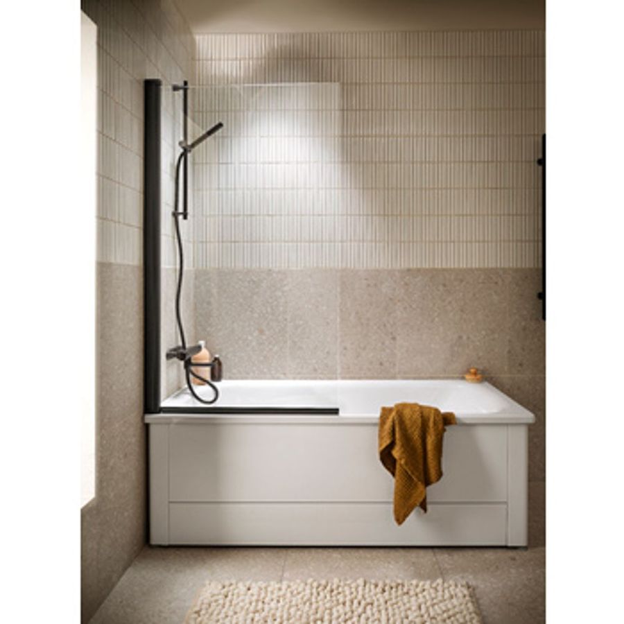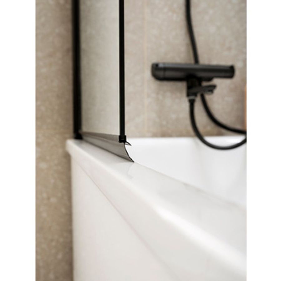 Badkarsvägg Alterna Lusso, klart glas. 6 mm härdat säkerhetsglas. Svängbar. Med snabbfästen för enklare montering. Väggprofil i aluminium. Justerbarhet: +/- 10 mm. Höjd 1400 mm.