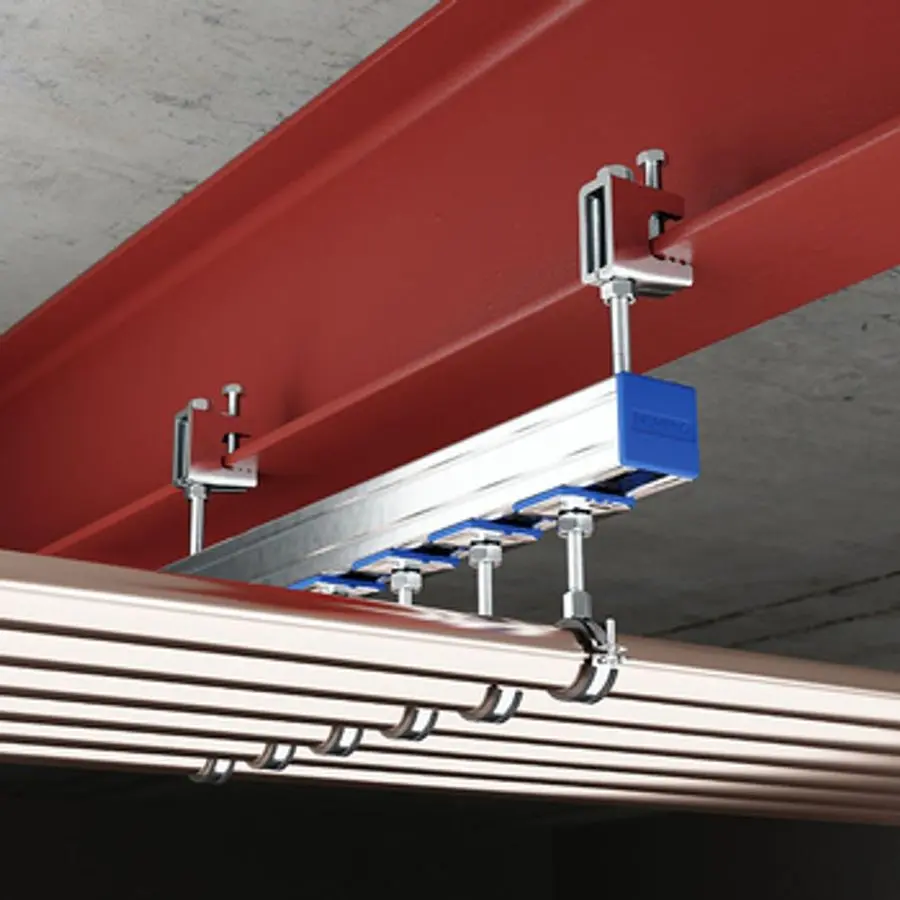 NOVIPRO balkklammer för fastsättning på balkfläns. Gängad. VdS- och FM-godkänd. Korrosivitetsklass C1: för montage inomhus eller vid låg korrosionsrisk.