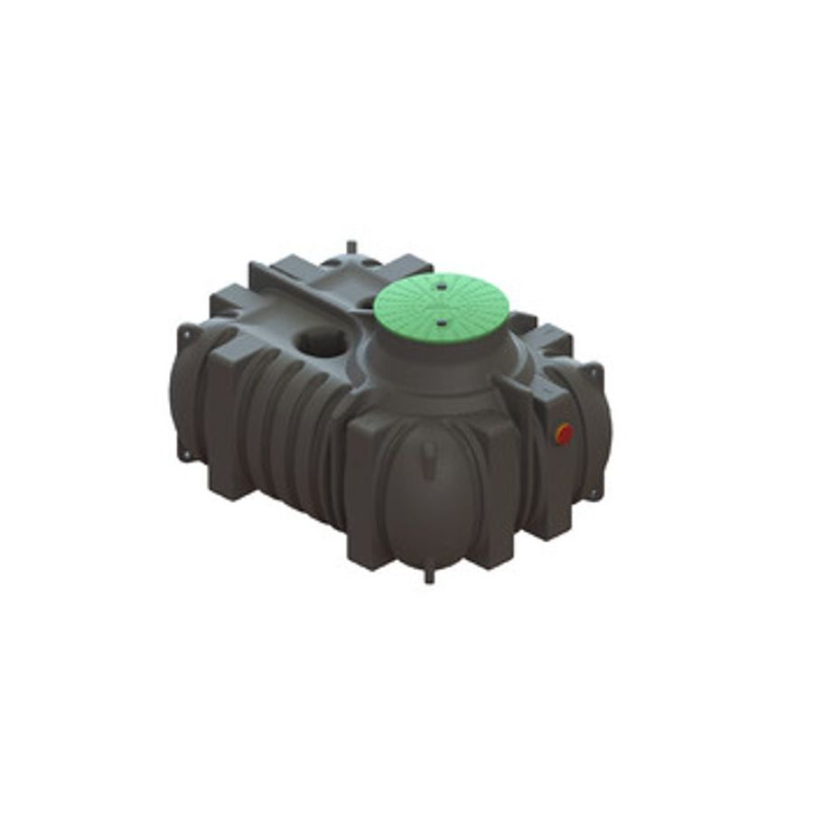 Grovrenstank i svart återvunnen PE-plast. Våtvolym 2,2 m³. Nedgrävningsdjup till 2,5 meter.