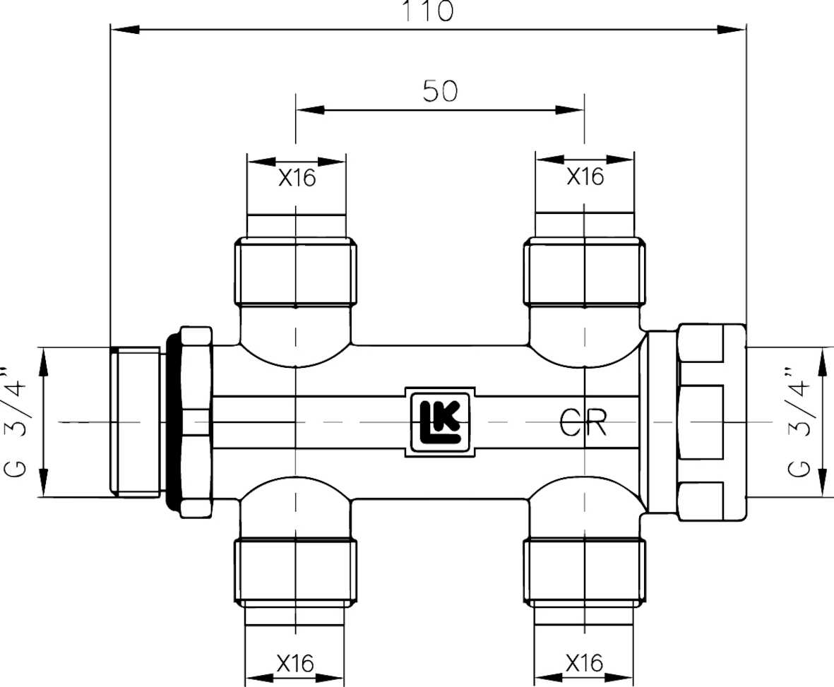 Påbyggnadsbar fördelare för värme- och tappvattensystem. Monteras på vägg i LK Fördelarkonsol eller i LK Fördelarskåp UNI. Tillverkad av avzinkningsbeständig mässing, förnicklad. Fördelare UNI 2+2-AX16 har anslutning G20 (ut- och inv gg) för matningsledning och AX16 PushFit anslutning med c/c 50 mm på avsticken. Samtliga typer har o-ringstätning på den utvändiga G20 sidan för matningsledning vilket underlättar hopmontering av 2 st fördelare utan ytterligare tätning. Samtliga fördelare levereras komplett med stödhylsor monterade. Push-koppling avsedd för LK PE-X och PAL Universalrör.