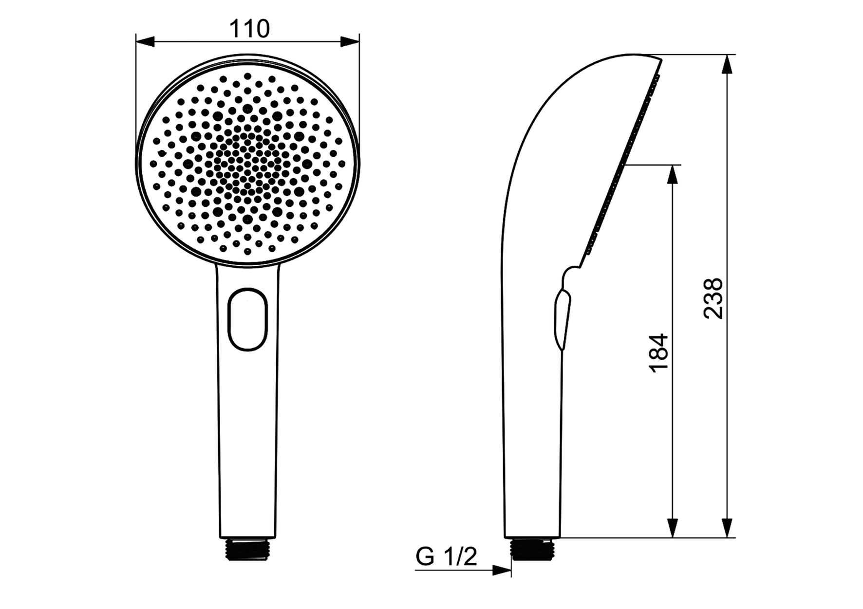 Handdusch med 3 stråltyper för en komfortabel duschupplevelse. Handduschen är enkel att rengöra tack vare sina antikalk-munstycken. Ø 110mm – 12L/min