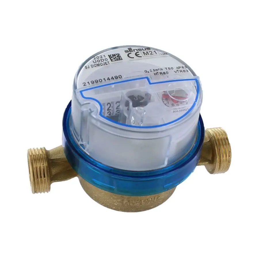 Sensus enkelstråliga vinghjulsmätare för kallvatten. Mätarhus i mässing. Inklusive inloppssil och packningar. Förberedd för Sensus fjärravläsning med puls, trådad M-Bus eller trådlös wM-Bus (köps separat).