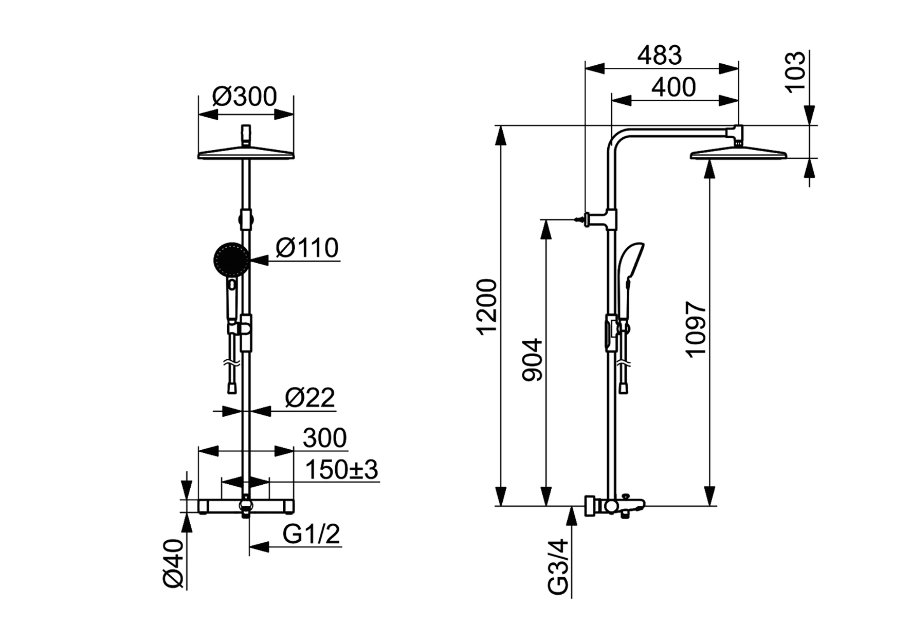 Takduschset med termostatblandare för kar/dusch, anslutning 150cc med G 3/4″ inv.g., lekande mutter med plantätning. Användarvänliga vred med temperaturbegränsnings knapp 38°, kontroll för flöde med eco-flödesläge. Blandaren är utrustad med backventiler och smutsfilter. Handdusch med ecoflöde och 3-stråltyper för en komfortabel duschupplevelse. Takdusch och handdusch är enkla att rengöra tack vare sina antikalk-munstycken.