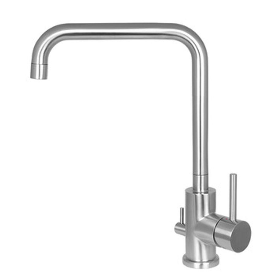Köksblandare tillverkad i rostfritt stål (SS304), vilket ger hög slitstyrka, lång livslängd och god korrosionsbeständighet. Blandaren är 100% blyfri och återvinningsbar. Passar i miljöer med höga krav på hållbarhet, hygien och hälsa. Materialets hårdhet gör produkten motståndskraftig mot repor, flisning och slitage. De släta, porfria ytorna bidrar till god hygien och minskar risken för bakterietillväxt. Anslutning sker med 3/8″ flexslang i rostfritt stål. Produkten innehåller inga ämnen som omfattas av REACH-informationsplikt. Blandaren är utrustad med keramisk insats för pålitlig funktion över tid. Certifierad av Sintef