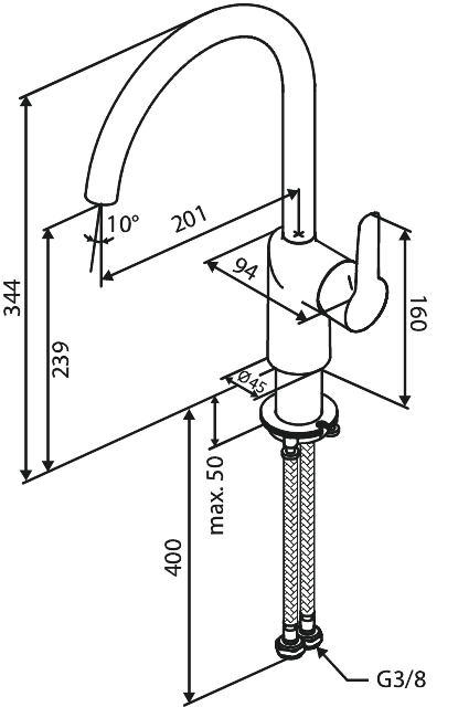 Core köksblandare med hög pip. Keramisk insats. Flöde 6 l/min. Ljudklass1. 110 graders svängbarhetsbegränsning.