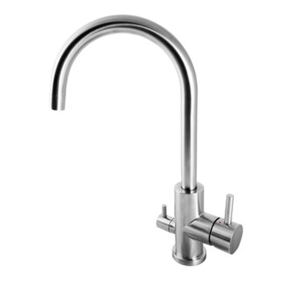 Köksblandare tillverkad i rostfritt stål (SS304), vilket ger hög slitstyrka, lång livslängd och god korrosionsbeständighet. Blandaren är 100% blyfri och återvinningsbar. Passar i miljöer med höga krav på hållbarhet, hygien och hälsa. Materialets hårdhet gör produkten motståndskraftig mot repor, flisning och slitage. De släta, porfria ytorna bidrar till god hygien och minskar risken för bakterietillväxt. Anslutning sker med 3/8″ flexslang i rostfritt stål. Produkten innehåller inga ämnen som omfattas av REACH-informationsplikt. Blandaren är utrustad med keramisk insats för pålitlig funktion över tid. Certifierad av Sintef