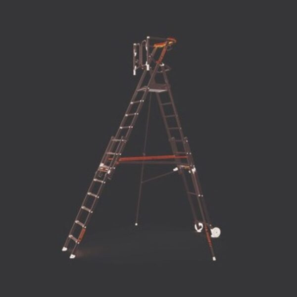 Plattformsstegen som kombinerar maximal säkerhet med enkel hantering. Enhandsmekanismen för höjdjustering är enkel att hantera så plattformsstegen kan snabbt anpassas för applikationer på olika höjder. Stor plattform (400 x 550 mm) med 1,0 m högt, runtgående räcke och en automatisk port för maximal säkerhet på höjd. Hög komfort vid uppstigning med 60 mm djupa trappsteg. Enkel att flytta tack vare två stora hjul på stödsidan, även i monterat tillstånd.