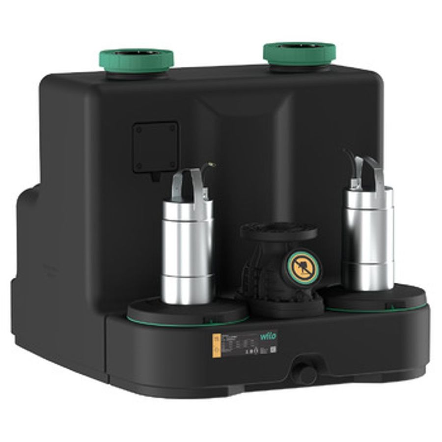 Anslutningsklar pumpstation för installation ovan golv. Komplett med två pumpar och automatik.