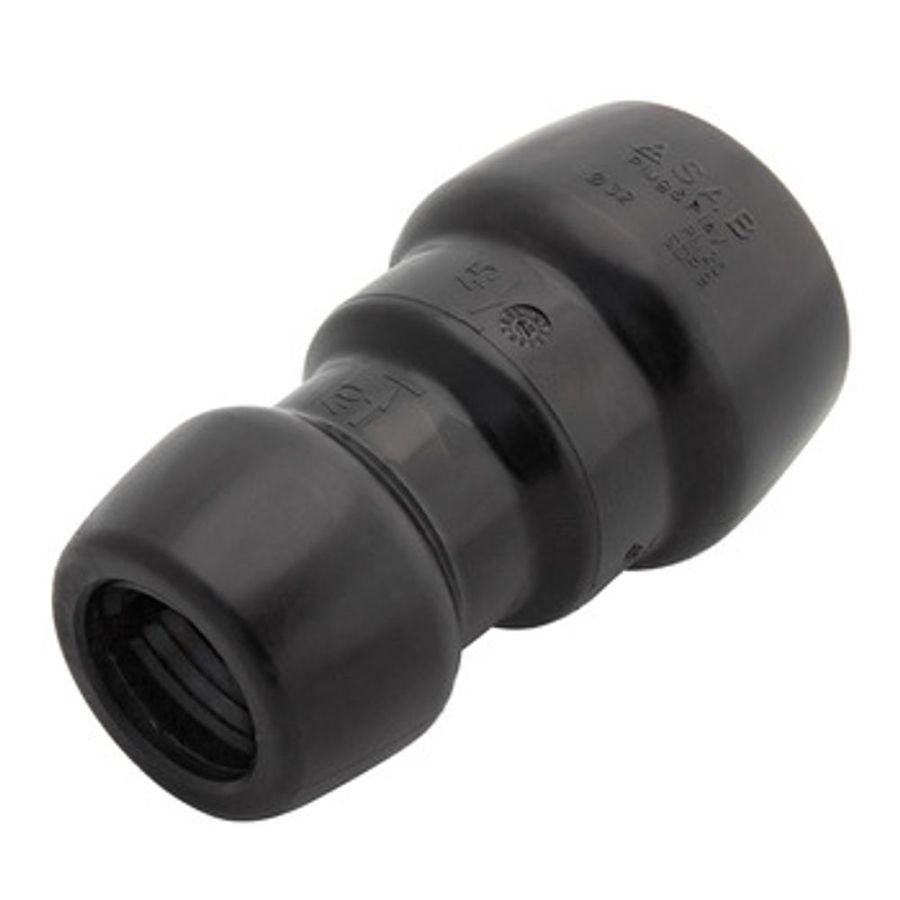 Dragfast tryckvattenkoppling, för PE-rör med direktinstick. Kopplingarna har en dubbel läppringstätning och speciellt utformad gripring. Dragfast koppling SDR11 och 17