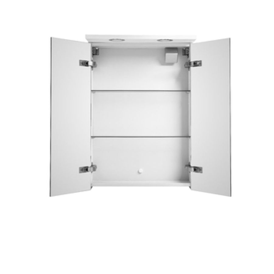 Alterna Ariella Aqua Spegelskåp. Spegelskåpet är helt vattentåligt, tillverkat i termoplast, med 2 dubbelsidiga mjukstängande spegeldörrar. Eluttag IP44 och 2 hyllor i glas. Finns även med belysningsramp med 2 nedåtriktade LED-lampor.