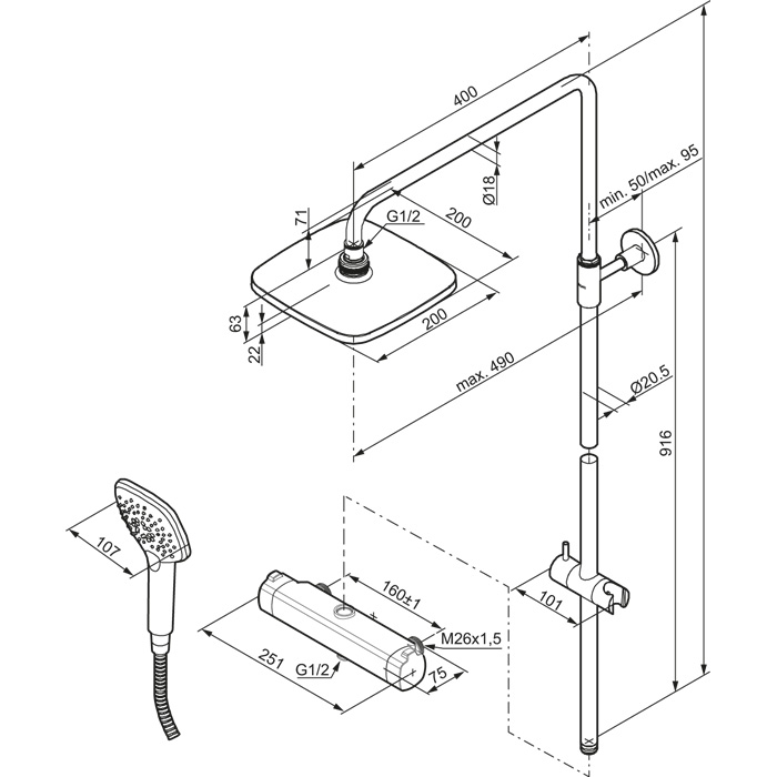 • Duschblandare:Tryckbalanserad termostatinsats.