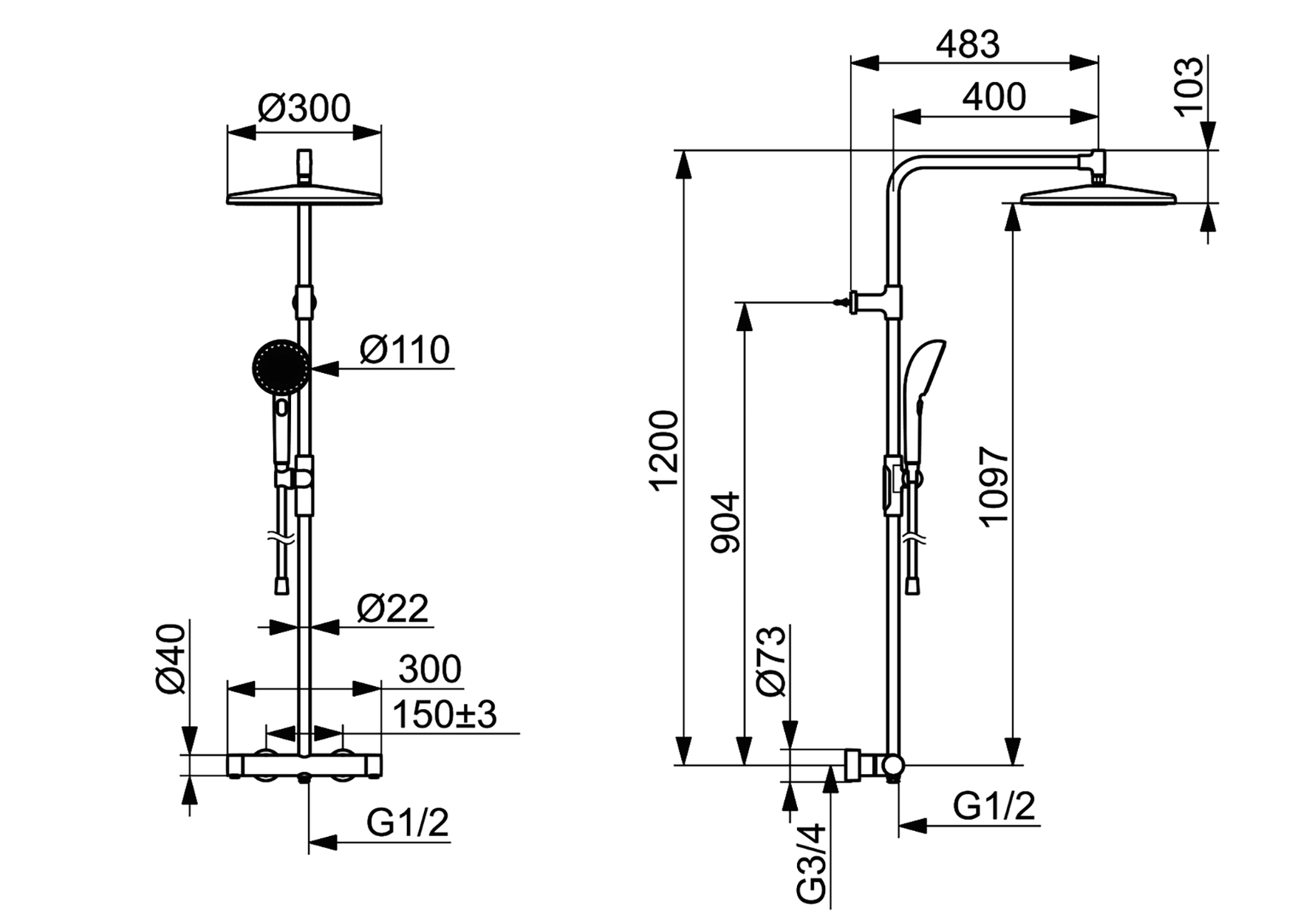 - • Handdusch Ø110mm