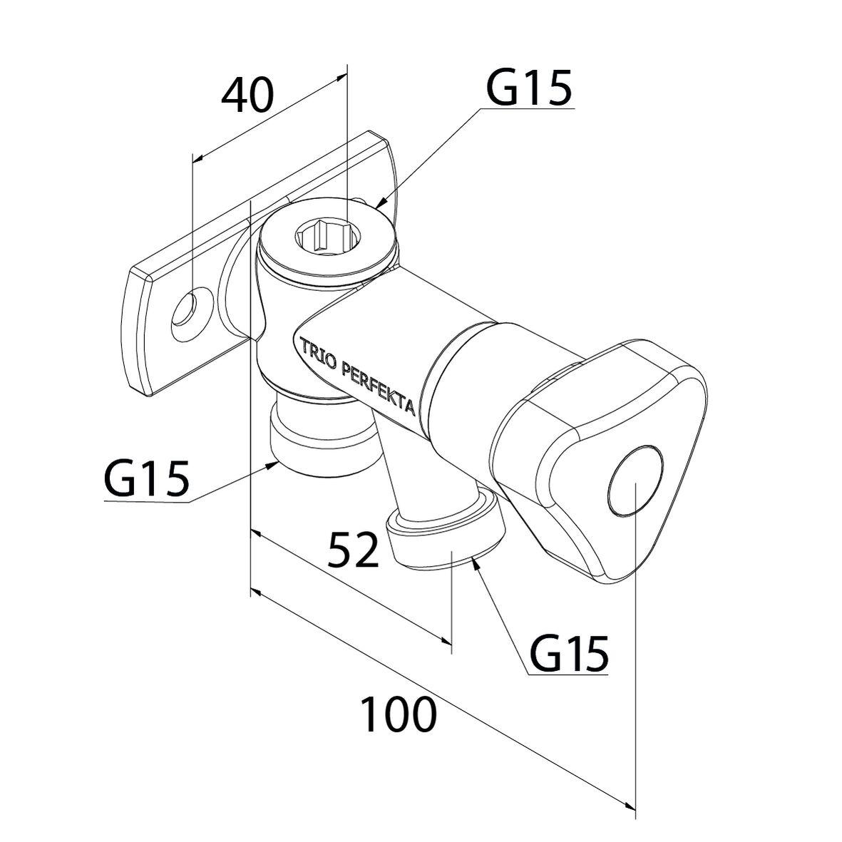 Tappventil G15 med väggfäste i blyfri AZH-mässing. Med typgodkänd backventil, skyddsmodul EB. Inklusive plugg och anslutningsnippel. Förkromad.