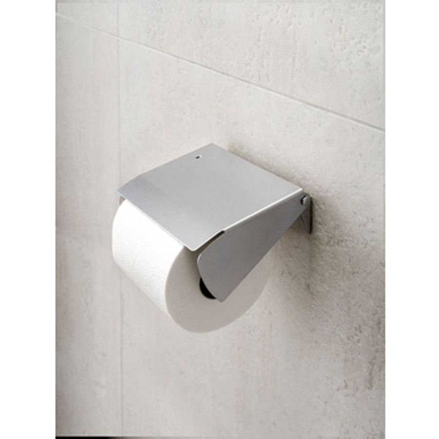 Toalettpappershållare Picto med fjädrande lock i borstat rostfritt stål med självhäftande 3M tape.