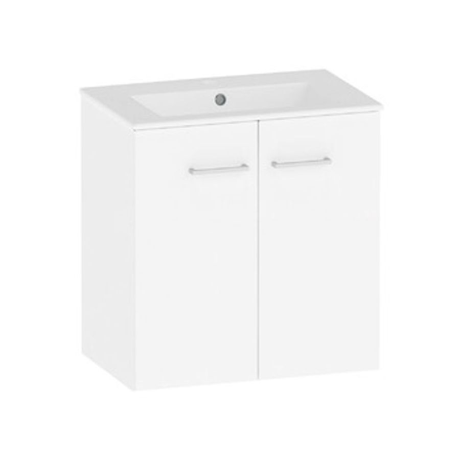 Tvättställsskåp i nanokeramiskt pulverlackat elförzinkat stål. Stila tvättställsskåp finns att få i antracit och vitt utförande. Tvättställsskåpets botten har färdiga hål för stödben (stödben beställs separat vid behov). Möjlighet till sidojustering av dörrarna. En löstagbar hylla i skåpet. Den synliga delen av tvättstället är bara 20 mm. Tvättställ i porslin. Vattenlås med bottenventil ingår. Gott om plats finns i skåpets bakkant för vattenlås inkommande vattenrör. Tvättställets och skåpets totala höjd är 620 mm.