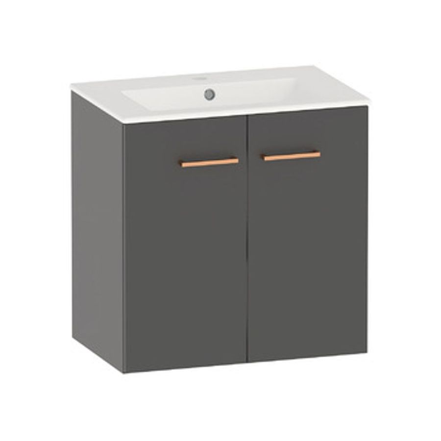 Tvättställsskåp i nanokeramiskt pulverlackat elförzinkat stål. Stila tvättställsskåp finns att få i antracit och vitt utförande. Tvättställsskåpets botten har färdiga hål för stödben (stödben beställs separat vid behov). Möjlighet till sidojustering av dörrarna. En löstagbar hylla i skåpet. Den synliga delen av tvättstället är bara 20 mm. Tvättställ i porslin. Vattenlås med bottenventil ingår. Gott om plats finns i skåpets bakkant för vattenlås inkommande vattenrör. Tvättställets och skåpets totala höjd är 620 mm.