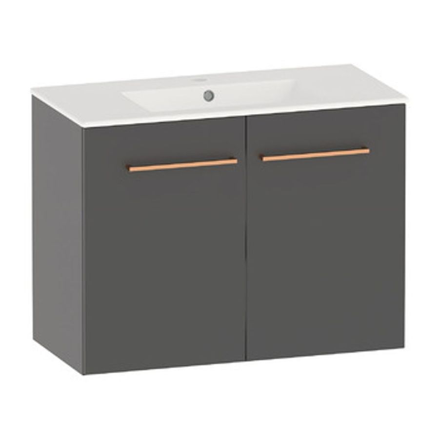 Tvättställsskåp i nanokeramiskt pulverlackat elförzinkat stål. Stila tvättställsskåp finns att få i antracit och vitt utförande. Tvättställsskåpets botten har färdiga hål för stödben (stödben beställs separat vid behov). Möjlighet till sidojustering av dörrarna. En löstagbar hylla i skåpet. Den synliga delen av tvättstället är bara 20 mm. Tvättställ i porslin. Vattenlås med bottenventil ingår. Gott om plats finns i skåpets bakkant för vattenlås inkommande vattenrör. Tvättställets och skåpets totala höjd är 620 mm.
