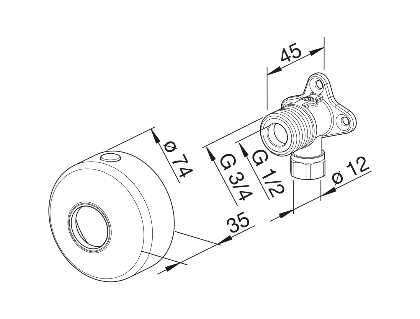 Med föravstängning och manschett för Ø12 rör med förminskningsset för Ø10 rör.